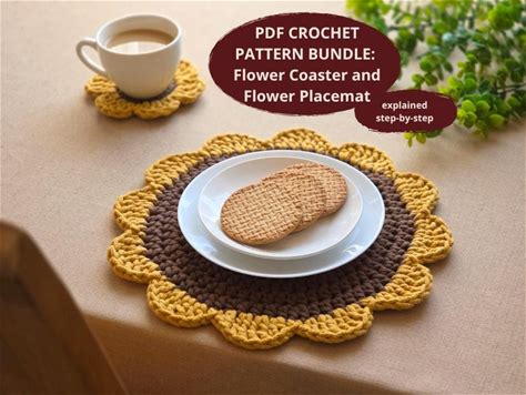 CROCHET PATTERN BUNDLE: Flower Coaster + Placemat | 2 in 1 | Instant Download Pdf | Tutorial And Video | Easy Crochet Home Decor