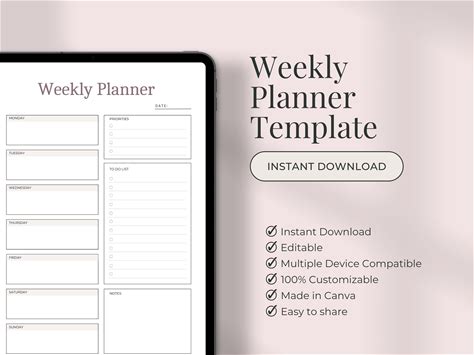 Shop editable weekly planner