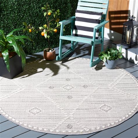 SAFAVIEH Global Dervla Moroccan Boho Tribal Indoor/ Outdoor Waterproof - 6'7" X 6'7" Round - Light Grey/Ivory - Runner/Round