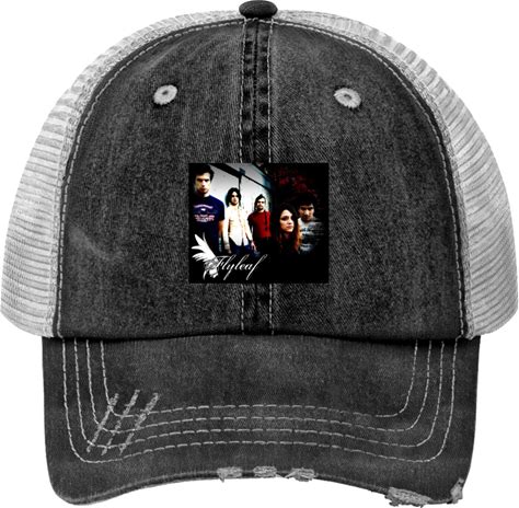 Flyleaf Print Vintage Trucker Hat - Unisex Black Cap With Distressed Visor & Breathable Mesh - Retro Outdoor Accessory