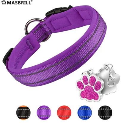 Masbrill Dog Collar With Dog Tag Reflective Soft Neoprene Padded Breathable And Adjustable, Odour Resistant And Fast Drying-Purple-M