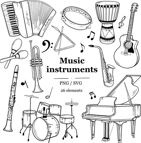 Musical Instruments Clipart: Hand-Drawn Orchestra SVG PNG (Digital Download)