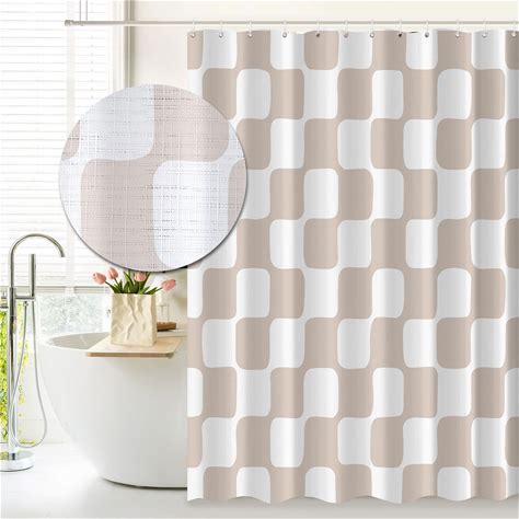 Tititex Retro Checkerboard Grid Pattern 140Gsm Faux Linen Fabric Shower Curtain, Cream White Classical Groovy Wavy Checkered Shower Curtain Sets