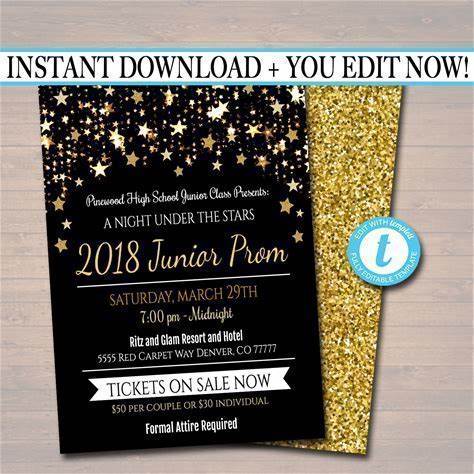 Editable Starry Night Theme Prom Invitation: Starry Night, Gold Glitter Printable (Digital Download)