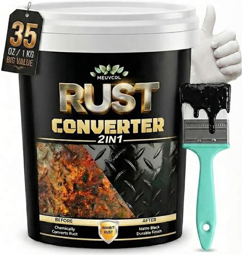 2 in 1 Rust Converter & Metal Primer, 35 Oz Black Rust Reformer Paint For Met...