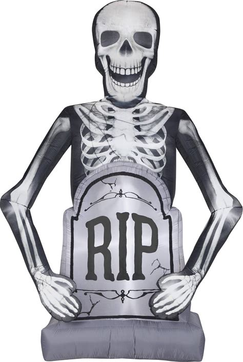 Gemmy Photorealistic Airblown Skeleton W/Tombstone Giant, 10 ft Tall, Multicolored