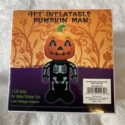 Spooky Halloween Inflatable 4ft Skull Skeleton W Pumpkin Head Lighted